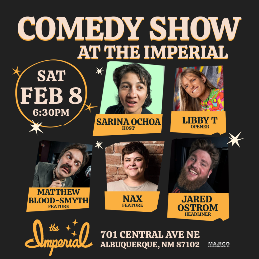 Join us for an unforgettable Comedy Night at The Imperial, where the funniest voices in Albuquerque take the stage for an evening filled with laughs, surprises, and great vibes!